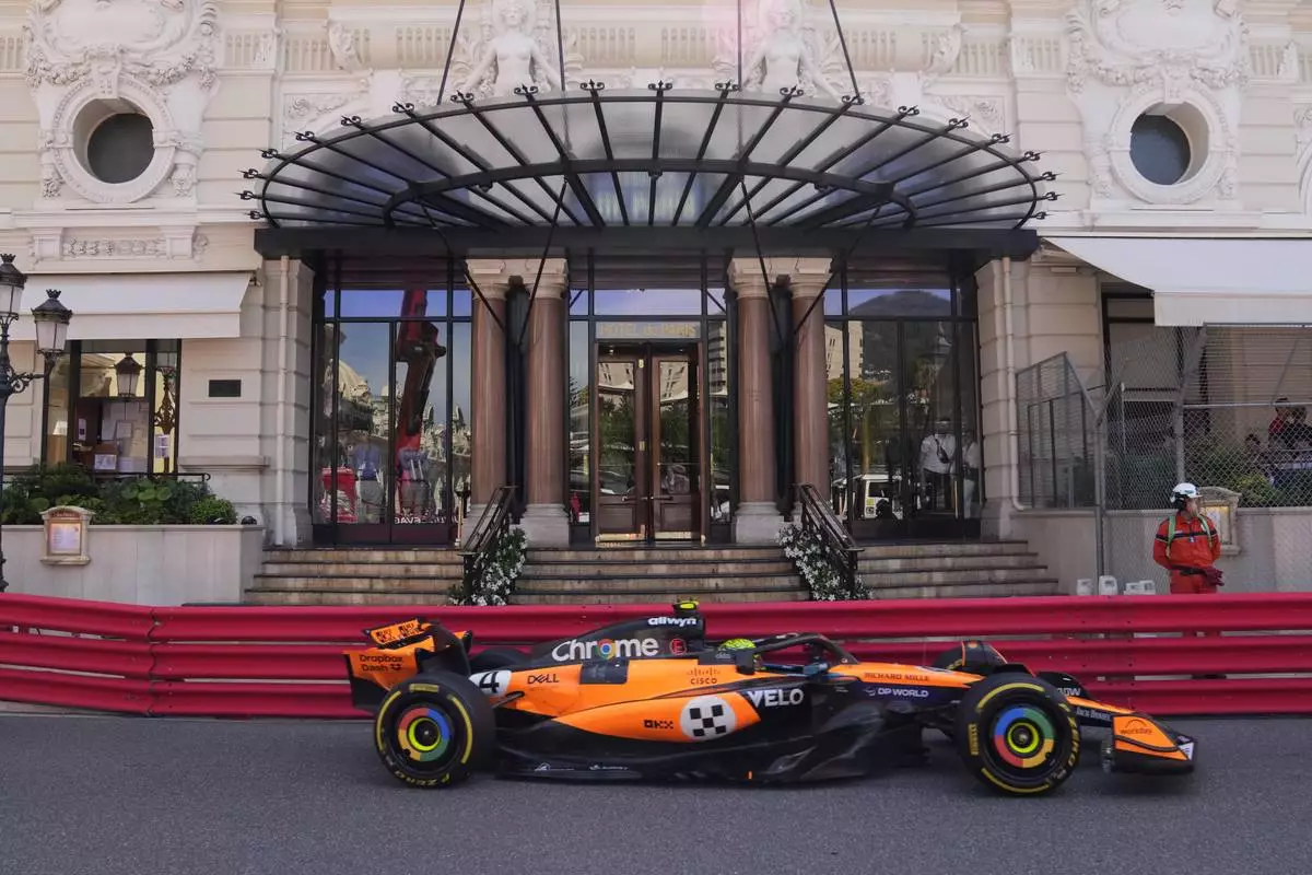 McLaren driver Lando Norris of Britain steers his car during the Formula One Monaco Grand Prix race at the Monaco racetrack in Monaco, Sunday, May 25, 2025. (AP Photo/Manu Fernandez)