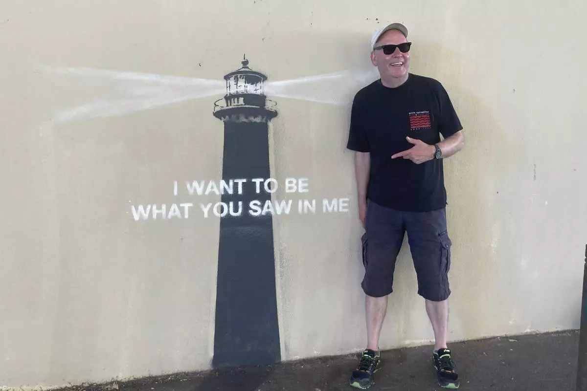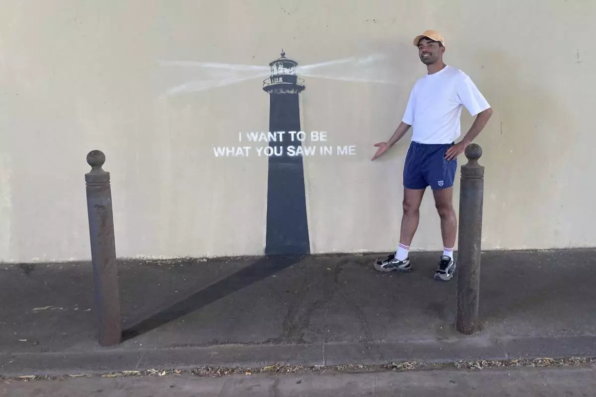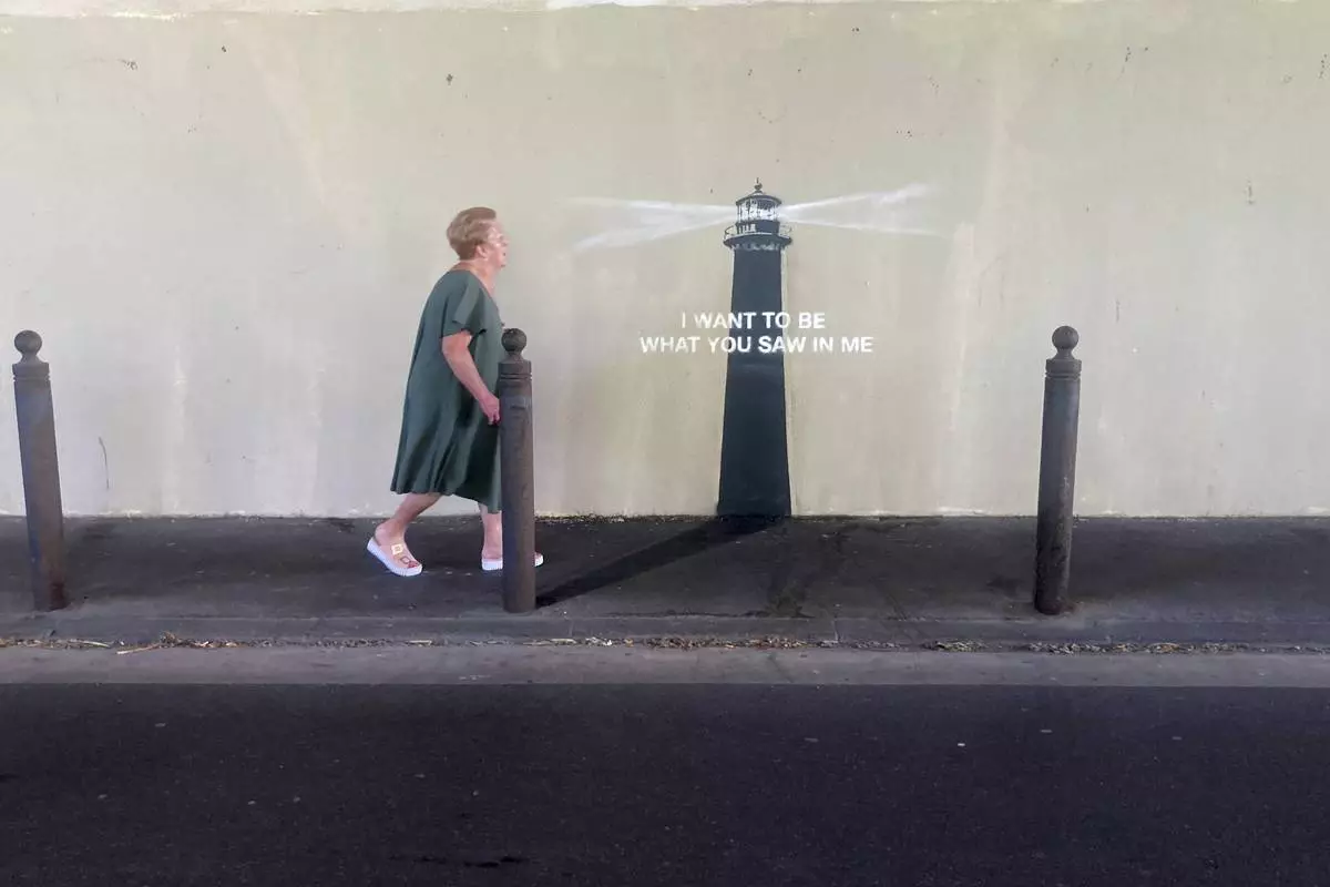 MARSEILLE, France (AP) — The lighthouse appeared overnight. Painted on a wall tucked away in a quiet Marseille street, its beam aligned perfectly with the real-life shadow of a metal post on the pavement. At its center, stenciled in crisp white, are the words: “I want to be what you saw in me.”