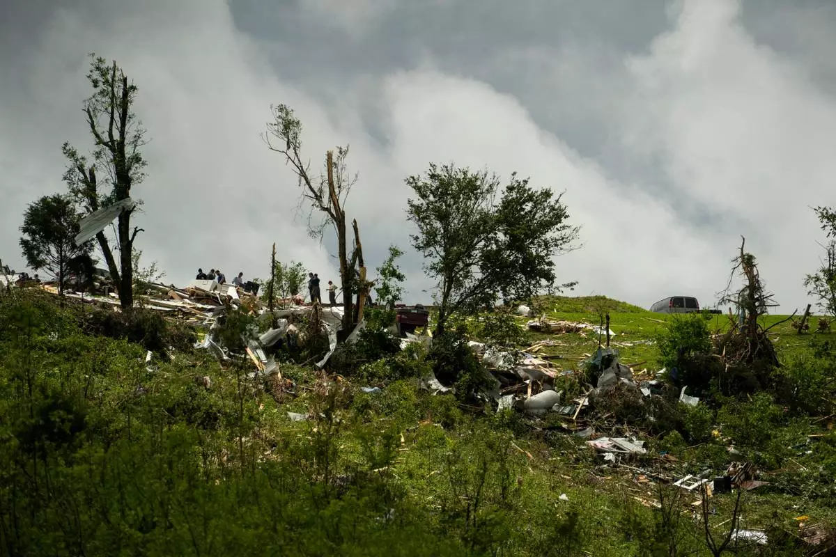 Debris and heavy damage are seen from severe weather, Friday, May 30, 2025, in Springfield, Ky. (AP Photo/Michael Swensen)