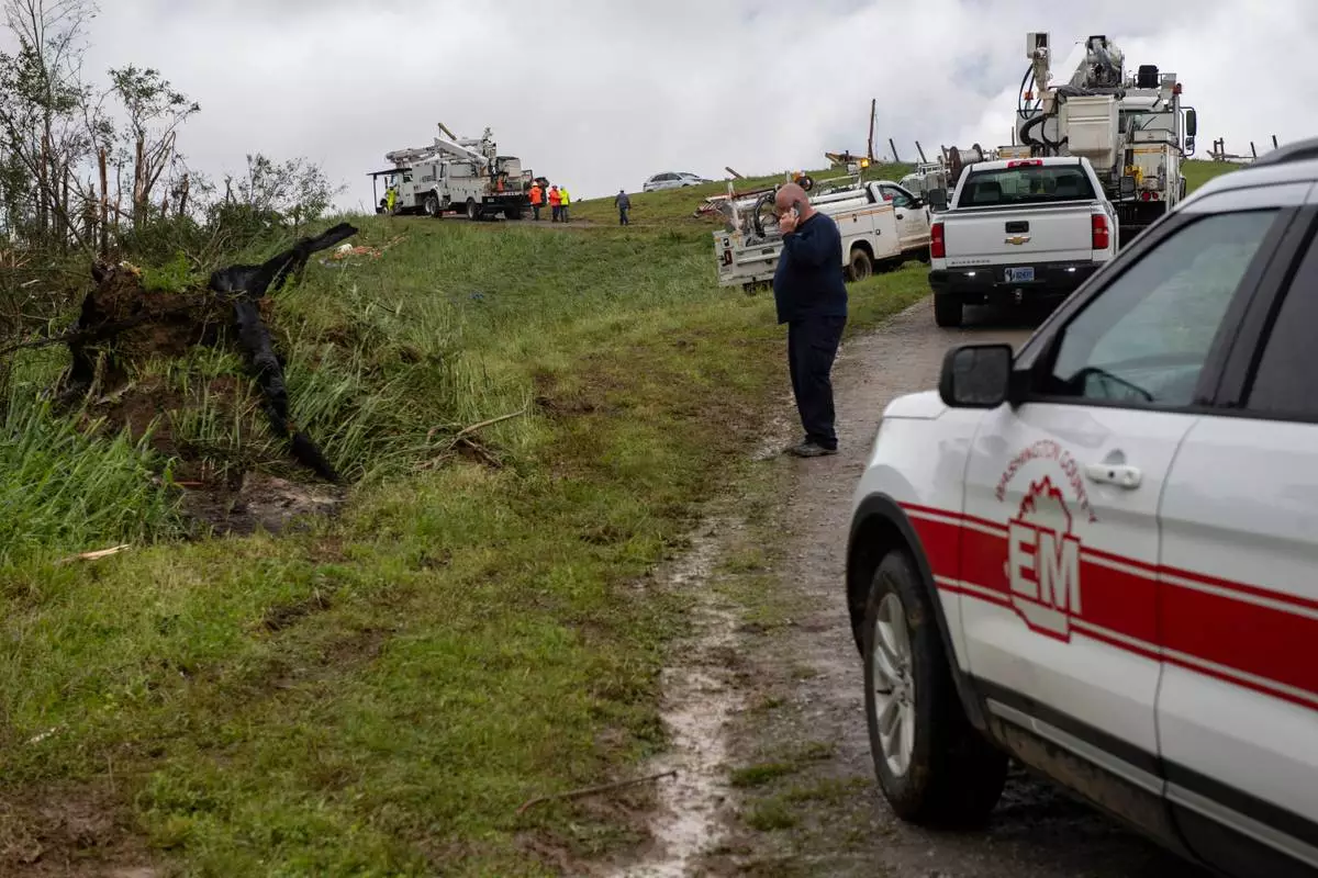 The National Weather Service’s office in Louisville, Kentucky, said a crew surveying damage Friday in Washington County was following a damage path that may enter neighboring Mercer County. By midday, the crew had found “at least” EF1 on the Enhanced Fujita Scale tornado damage in southwestern Washington County, the office said in a social media post.