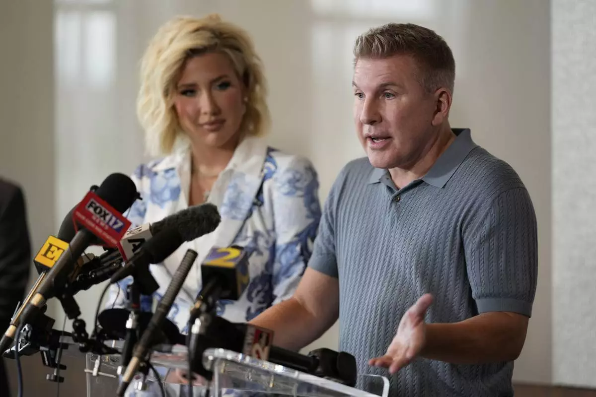 Reality television star Todd Chrisley speaks as his daughter Savannah Chrisley looks on during a news conference on Friday, May 30, 2025 in Nashville, Tenn. (AP Photo/George Walker IV)