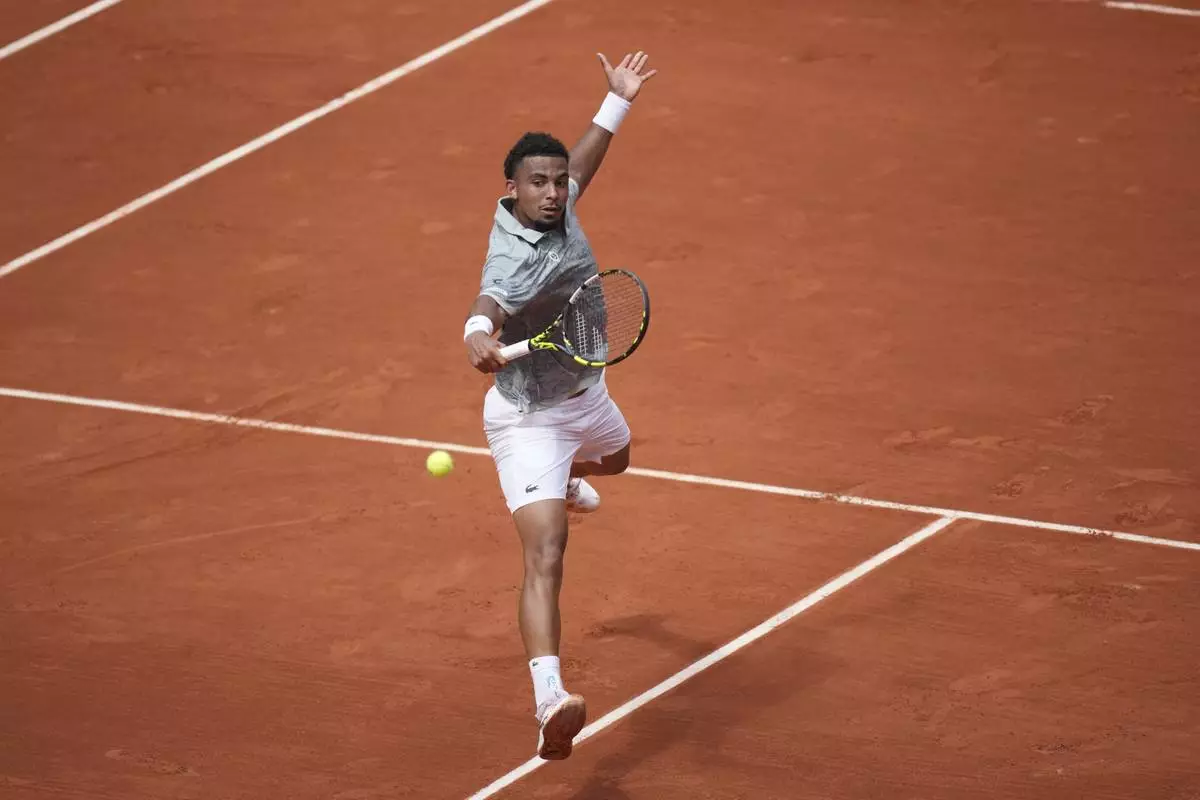 France's Arthur Fils returns the ball to Spain's Jaume Munar during their second round match of the French Tennis Open, at the Roland-Garros stadium, in Paris, Thursday, May 29, 2025. (AP Photo/Christophe Ena)