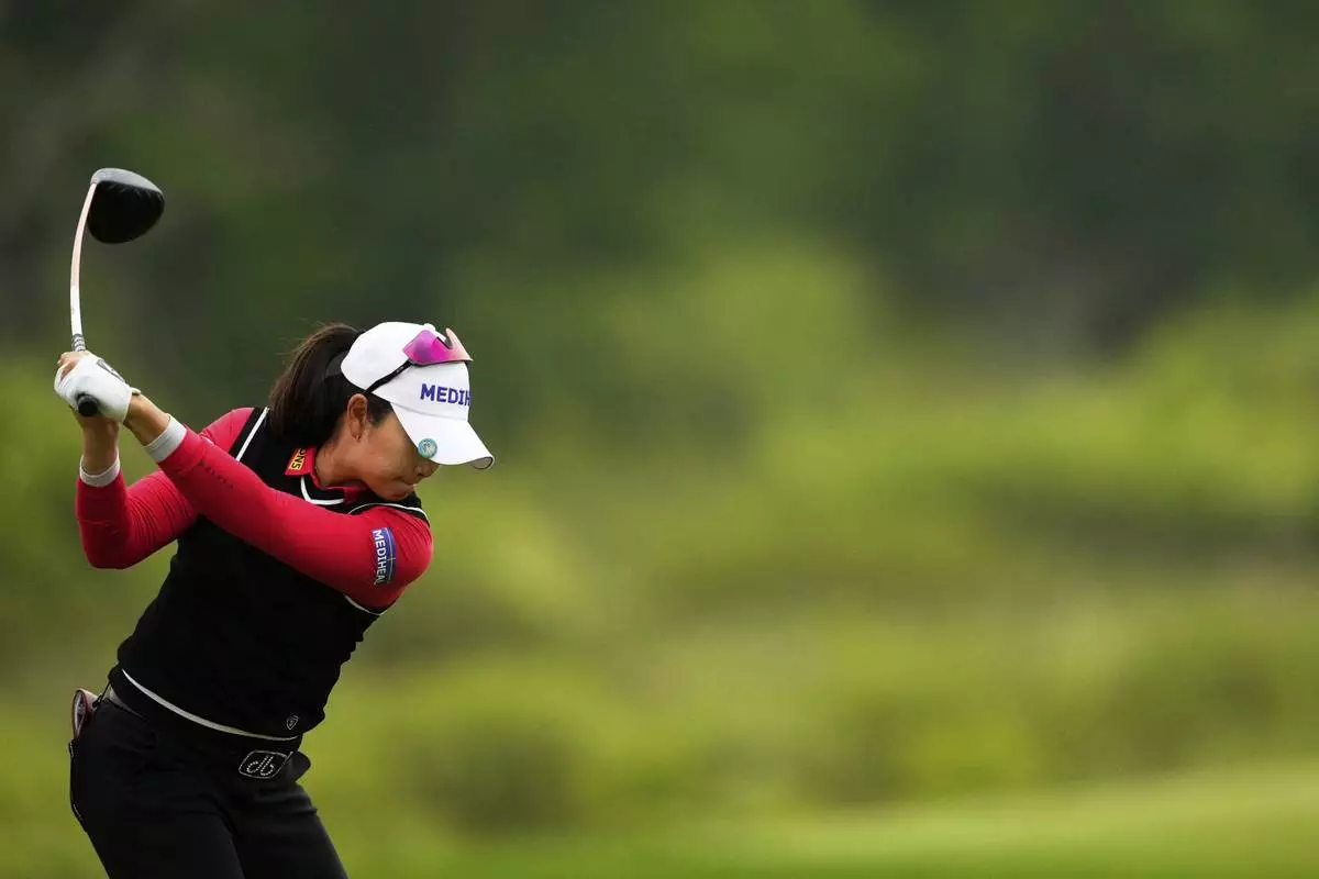 A Lim Kim, of South Korea, hits from the third tee during the second round of the U.S. Women's Open golf tournament at Erin Hills Friday, May 30, 2025, in Erin, Wis. (AP Photo/Matt York)