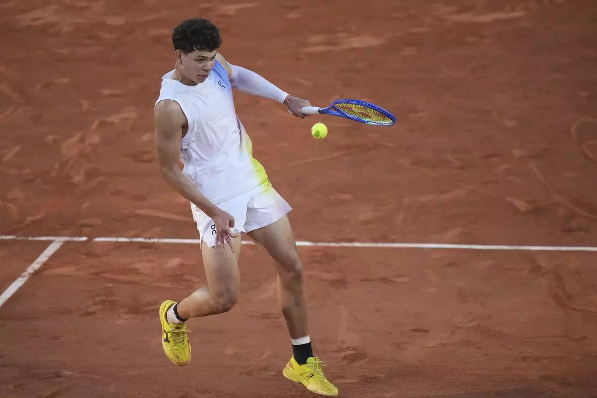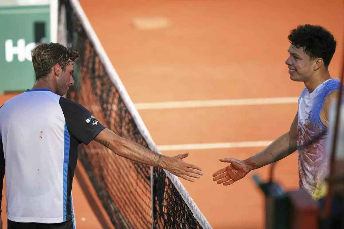 PARIS (AP) — Ben Shelton played one of the best and most unorthodox shots at the French Open so far when he won a point one-handed after falling flat on his stomach on Friday.