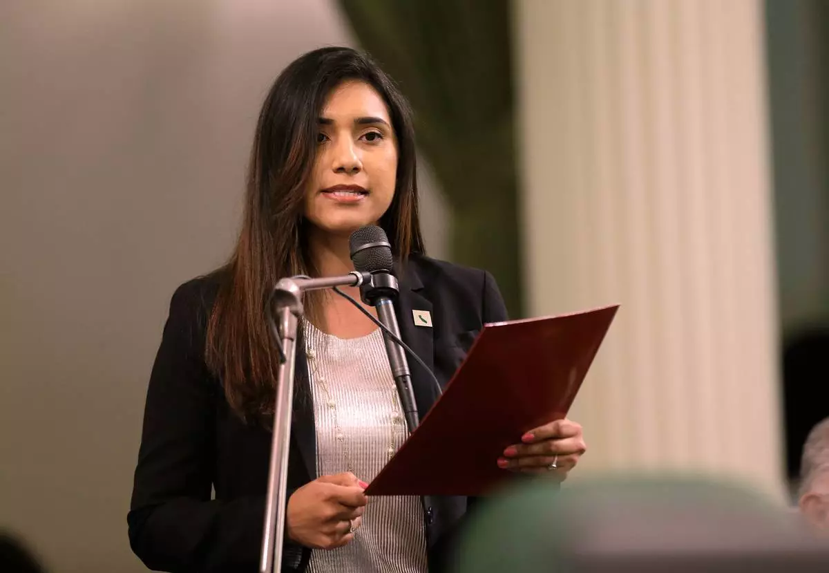 FILE - Assemblywoman Sabrina Cervantes, D-Riverside, at the Capitol in Sacramento, Calif., May 4, 2017. (AP Photo/Rich Pedroncelli, File)