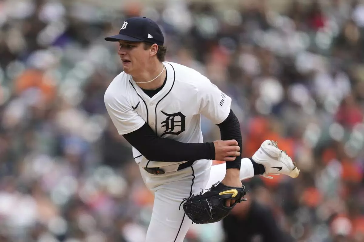 Detroit Tigers pitcher Jackson Jobe throws against the San Francisco Giants in the fourth inning during a baseball game, Wednesday, May 28, 2025, in Detroit. (AP Photo/Paul Sancya)