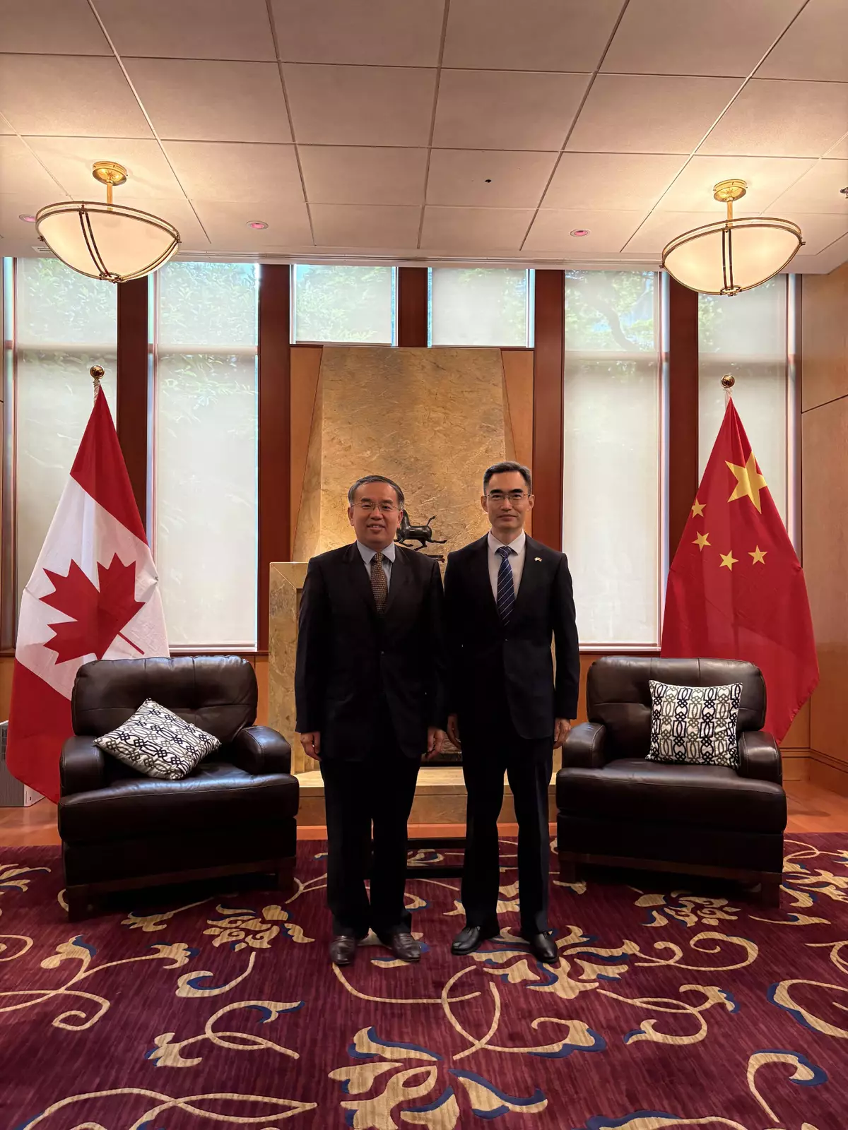 In the afternoon, Mr Hui paid a courtesy call to the Consul General of the People's Republic of China in Vancouver, Mr Yang Shu. Mr Yang said Hong Kong has always been a window of the country to the world and will continue to be. He encouraged Hong Kong to keep up with its work in deepening international exchanges and co-operation.