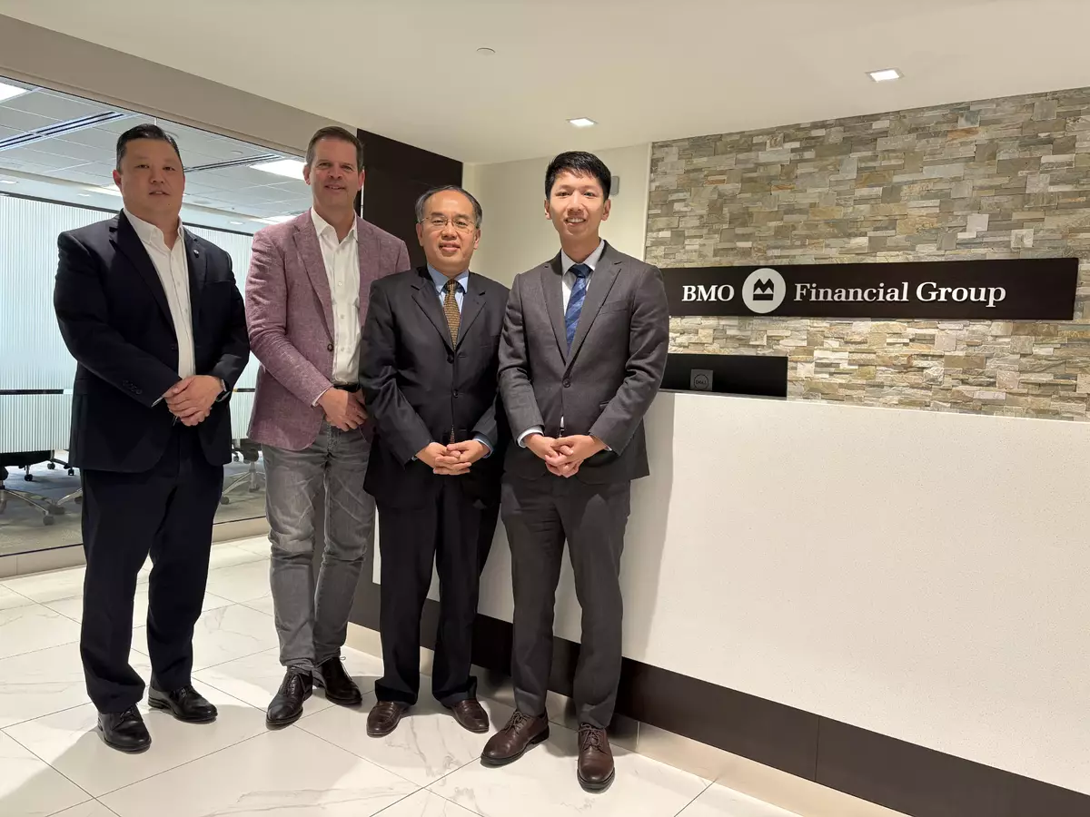 Before concluding his visit to Canada, Mr Hui visited Bank of Montreal and met with the Senior Vice President & Head, Mid-Market, Commercial Bank, Mr Andrew Hung, and Senior Vice President & Head, BC & Yukon, Mr Greg Vriend. He told them that in a world full of geopolitical uncertainties, Hong Kong's financial market is emerging as a risk-off haven for investors and attracting more investments owing to its connectivity with the Mainland and the world at large, bringing greater prospects for the banking sector and different financial areas.