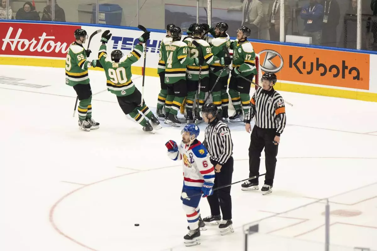 Landon Sim, Denver Barkey, Jesse Nurmi and Easton Cowan — into an empty net — also scored for London. Austin Elliott made 21 saves.