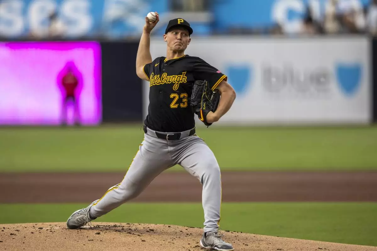 Pittsburgh Pirates starting pitcher Mitch Keller (23) throws against a San Diego Padres batter in the first inning of a baseball game, Friday, May 30, 2025, in San Diego. (AP Photo/Tony Ding)