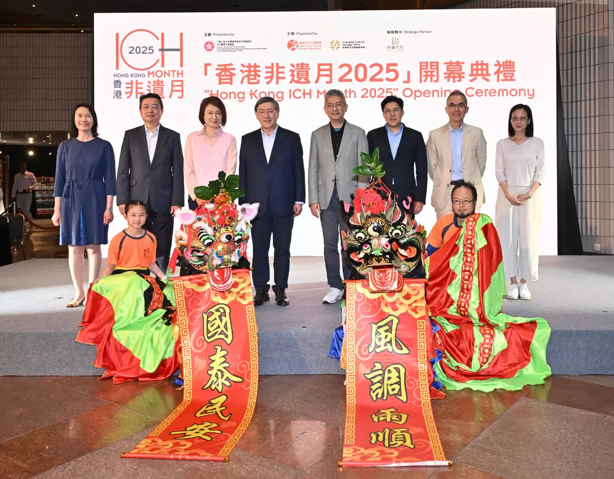 In support of the annual Cultural and Natural Heritage Day on the second Saturday of June designated by our country, the Intangible Cultural Heritage Office (ICHO) of the Leisure and Cultural Services Department (LCSD) will launch the first Hong Kong Intangible Cultural Heritage Month (Hong Kong ICH Month) in June. The opening ceremony for the Hong Kong ICH Month 2025 was held today (May 31) at the Hong Kong Cultural Centre.