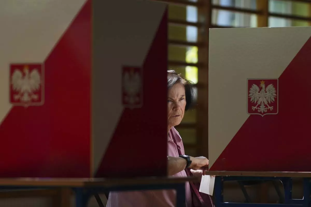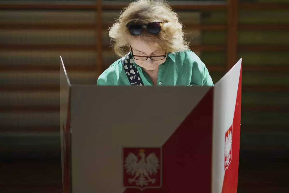 A women prepares to cast her vote during the presidential election runoff in Warsaw, Poland, Sunday, June 1, 2025. (AP Photo/Petr David Josek)