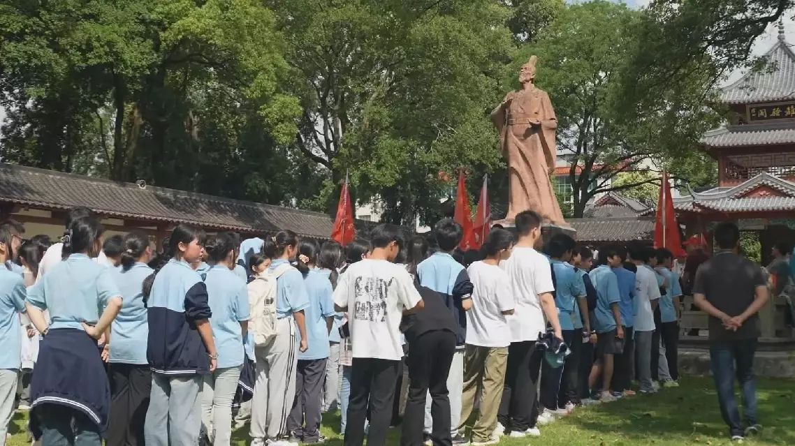 In Miluo City's Quzi Cultural Park, Hunan Province, the historical site of Qu Yuan's death, hundreds of student visitors participated in rituals reenacting the ancient memorial ceremony.