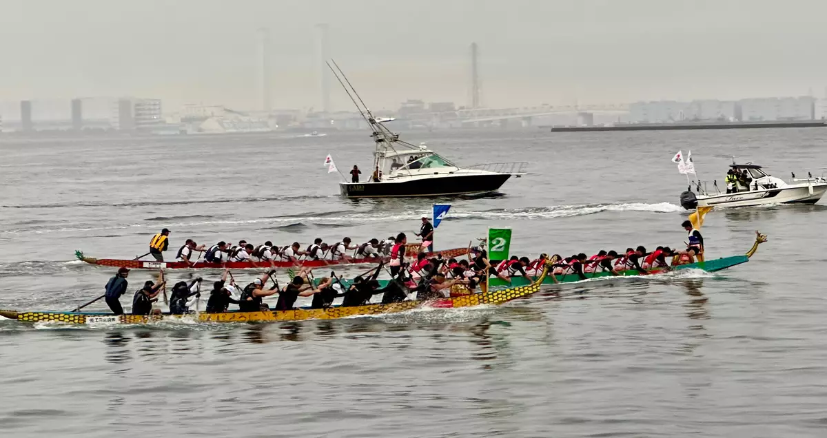 The Yokohama Dragon Boat Races, which have been held since 1994, attracted about 130 teams this year to compete in the two-day event on May 31 and June 1. The Hong Kong Cup race, sponsored by the Hong Kong Economic and Trade Office in Tokyo (Tokyo ETO), was one of the highlights.