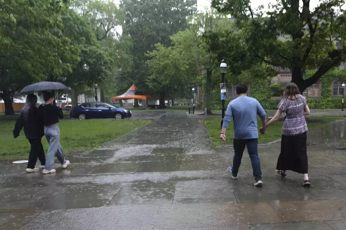 David Kim, a Catholic altar server, and his girlfriend, Savannah Nichols, walk on the Princeton University campus after attending a Mass at the school's chapel in Princeton, N.J., on Friday, May 16, 2025. (AP Photo/Luis Andres Henao)