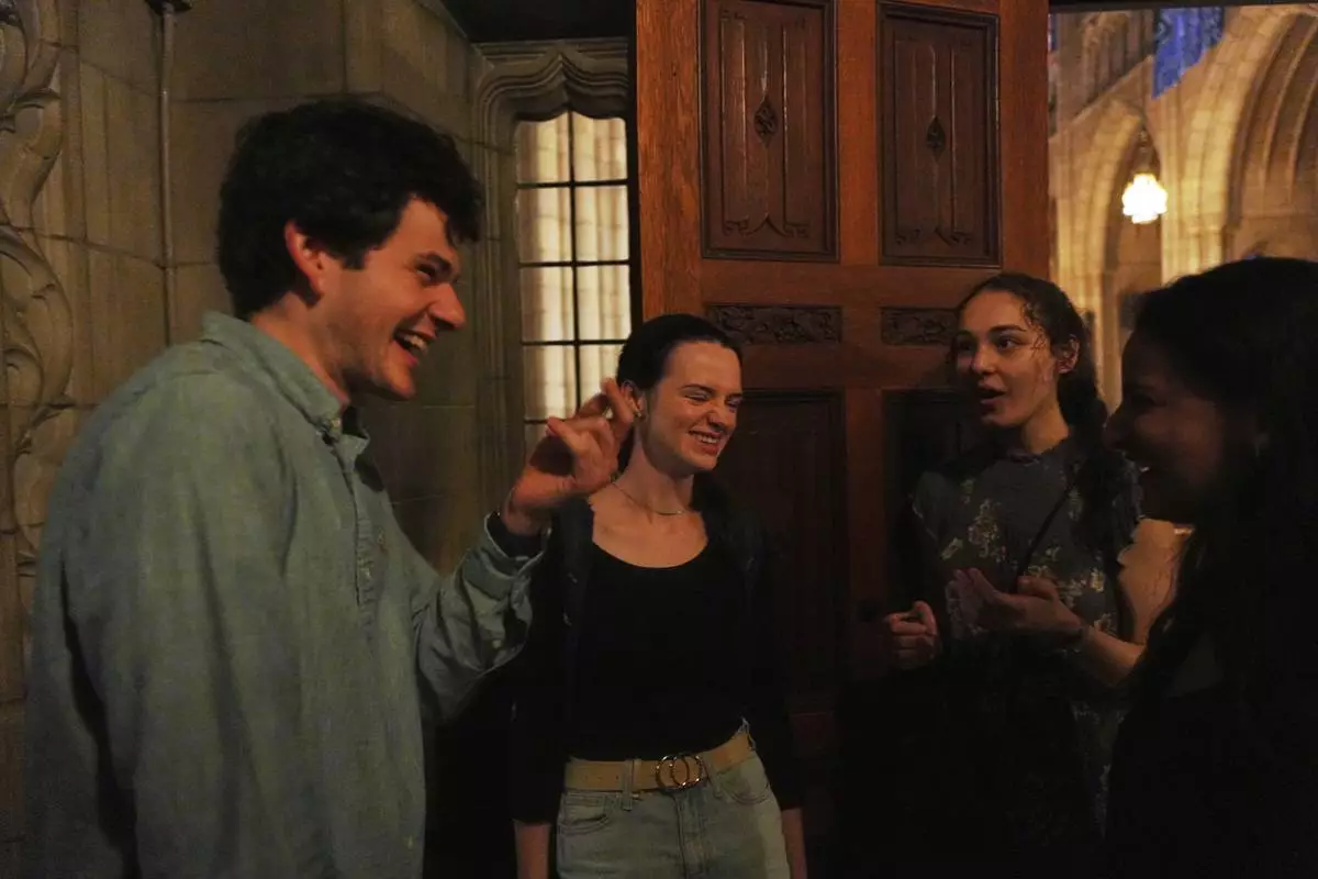 Members of the Aquinas Institute, Princeton University’s Catholic campus ministry, talk after attending a Mass at the school's chapel in Princeton, N.J., on Friday, May 16, 2025. (AP Photo/Luis Andres Henao)
