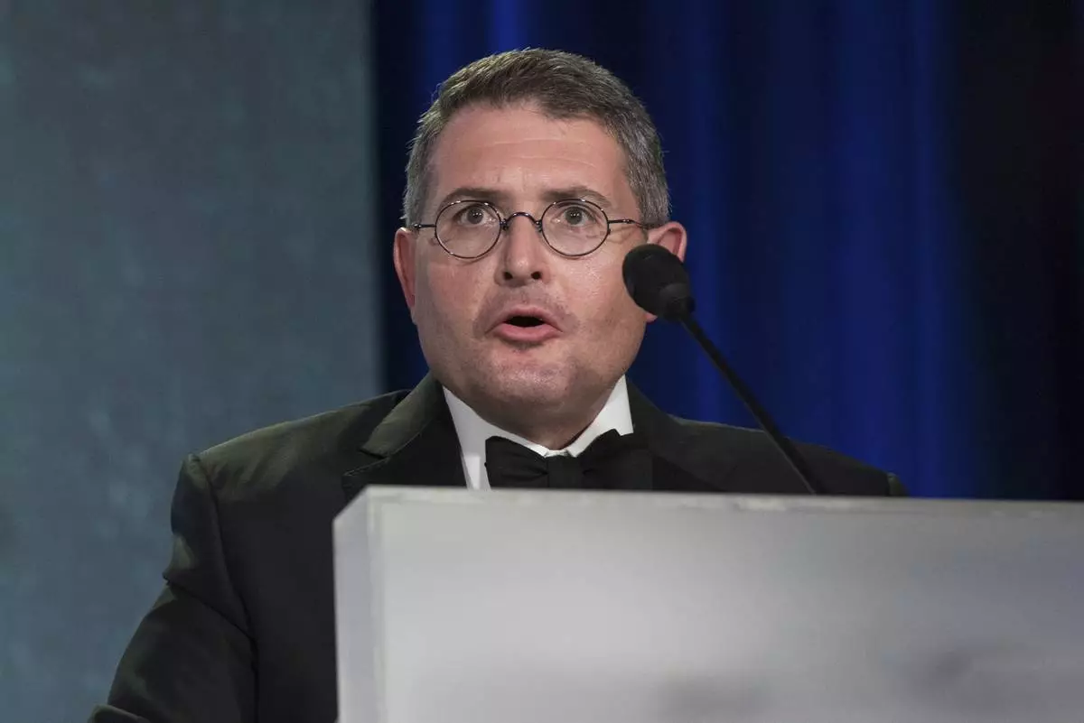 FILE - Leonard Leo speaks at the National Lawyers Convention in Washington, Nov. 16, 2017. (AP Photo/Sait Serkan Gurbuz, File)