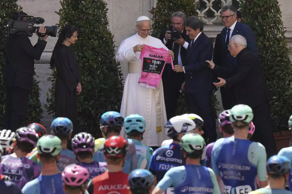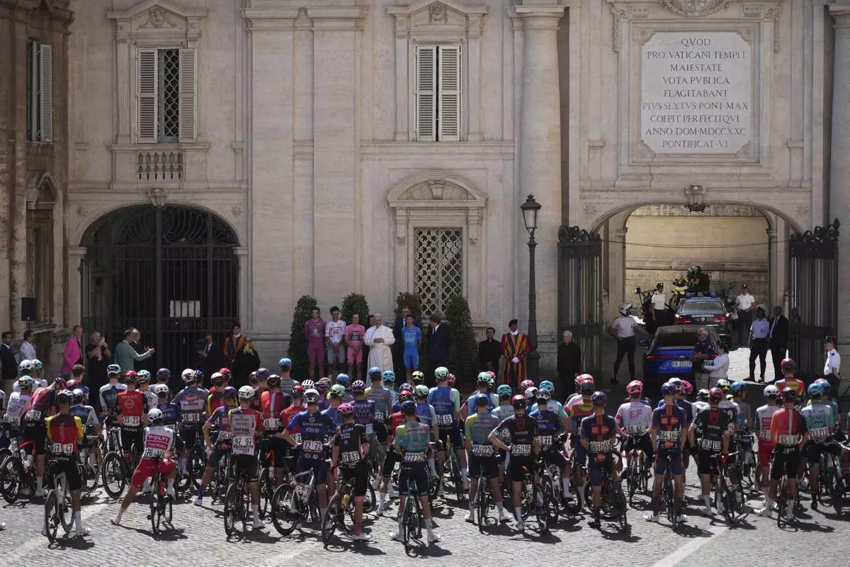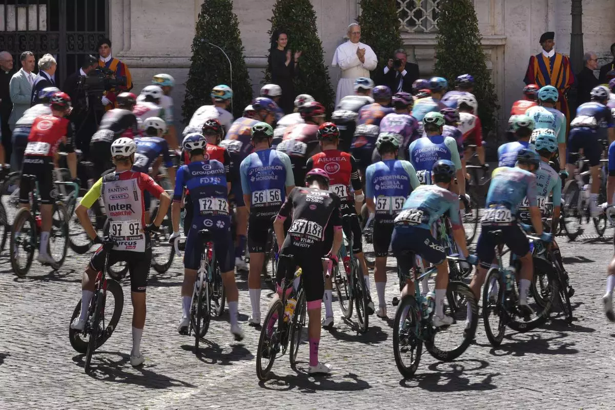 “You are role models for young people all over the world,” Leo told the peloton. “May God bless all of you on this last part of the Giro d’Italia. Congratulations to all of you. May you know that you are always welcome here in the Vatican. You are always welcome by the church, which represents God’s love for all people.”