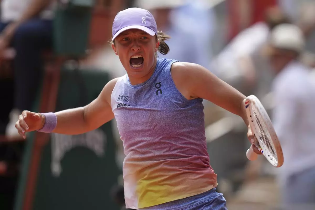 So after she went from dropping eight of the first nine games against Elena Rybakina in the French Open's fourth round Sunday, after she came through in the clutch, Swiatek responded with quite a reaction.
