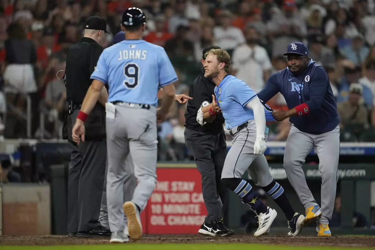 Taylor Walls ejected, has to be restrained in heated argument during Rays' 1-0 loss to Houston