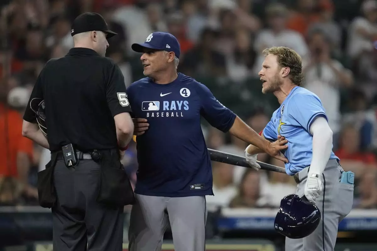 HOUSTON (AP) — Tampa Bay Rays infielder Taylor Walls was ejected Sunday in the ninth inning of a 1-0 loss to Houston and had to be restrained during a prolonged argument.