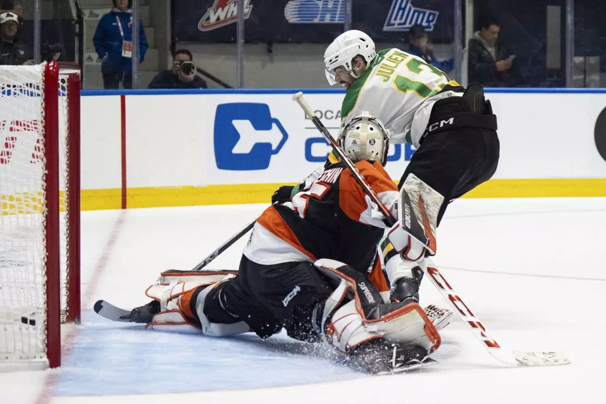 RIMOUSKI, Quebec (AP) — Philadelphia Flyers prospect Denver Barkey scored twice in the second period and the London Knights beat the Medicine Hat Tigers 4-1 on Saturday night for their third Memorial Cup title.