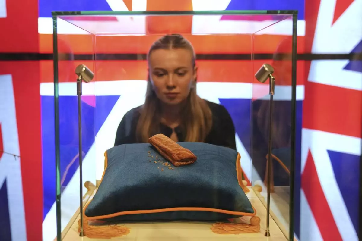 Hannah Mundin, Colourist at Madame Tussauds London looks towards the Greggs sausage roll figure as it is unveiled at Madame Tussauds Attraction in London, Wednesday, June 4, 2025, ahead of National Sausage Roll day on June 5. (AP Photo/Joanna Chan)