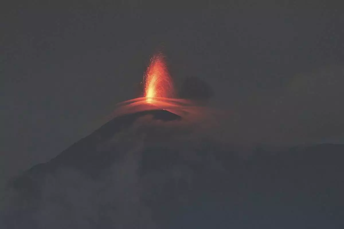Lava flows out of the crater of the Fuego Volcano, as seen from San Juan Alotenango, Guatemala, Thursday, June 5, 2025. (AP Photo/Moises Castillo)