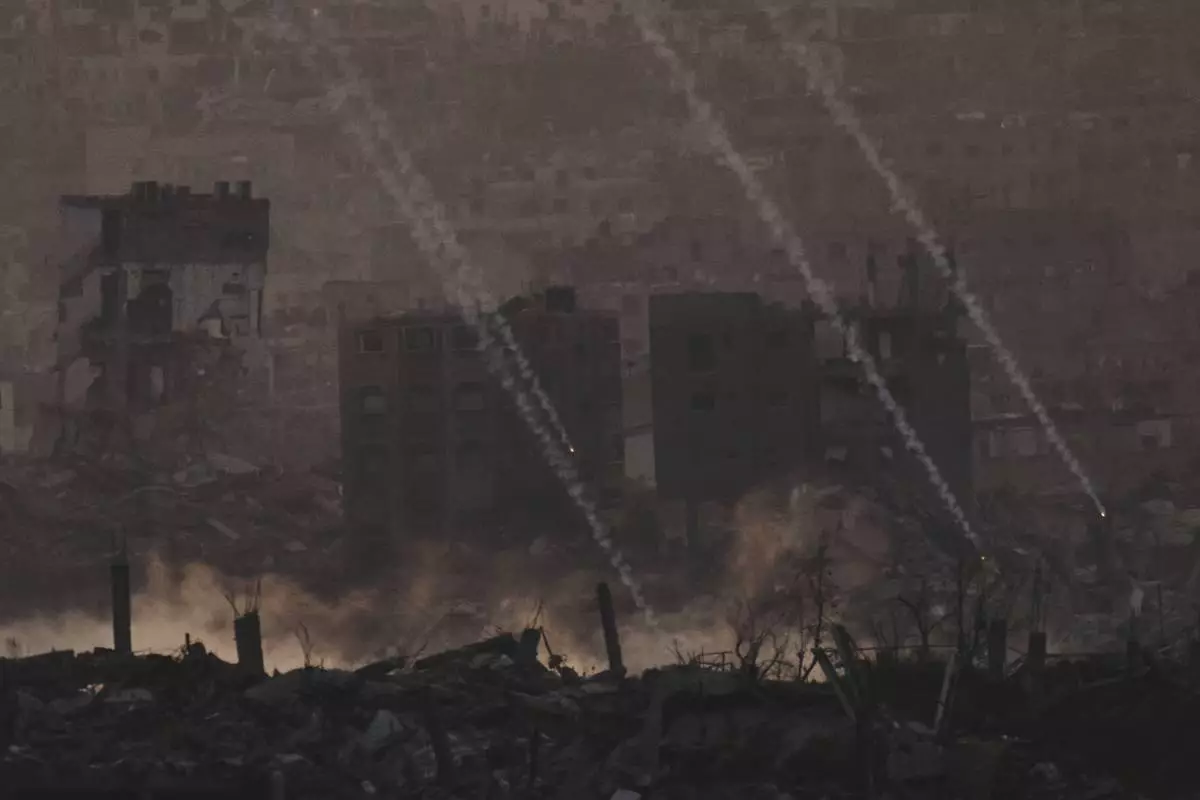 Israeli shelling hits an area in the northern of Gaza Strip as seen from southern Israel, Tuesday, June 3, 2025. (AP Photo/Leo Correa)