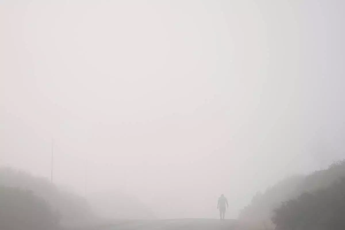 A man walks as fog covers Orot Rabin power plant near Hadera, Israel, Friday, June 6, 2025. (AP Photo/Ariel Schalit)