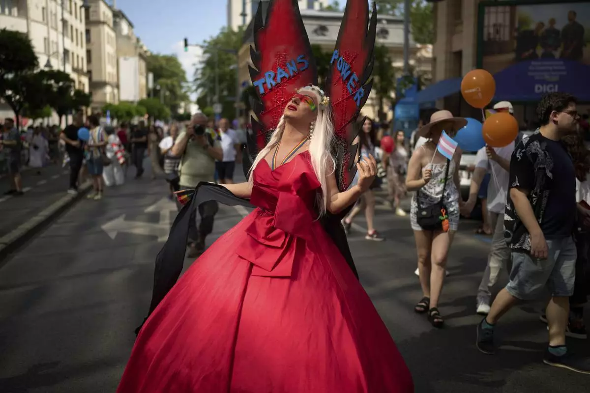 Antonella Lerca Duda, who identifies as a Roma transgender woman, poses during the Bucharest Pride Parade in Bucharest, Romania, Saturday, June 7, 2025. (AP Photo/Vadim Ghirda)