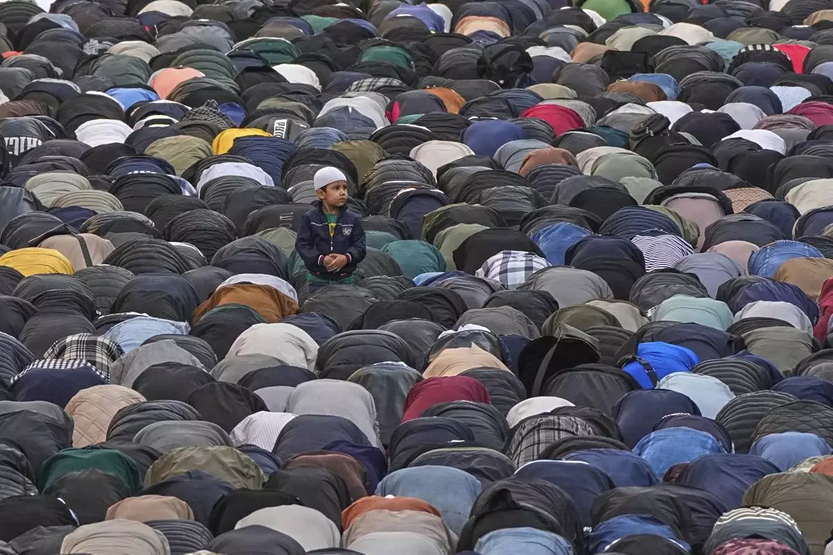 Muslim worshippers gather for Eid al-Adha prayer in the mixed Arab Jewish city of Jaffa, near Tel Aviv, Israel, Friday, June 6, 2025. (AP Photo/Oded Balilty)
