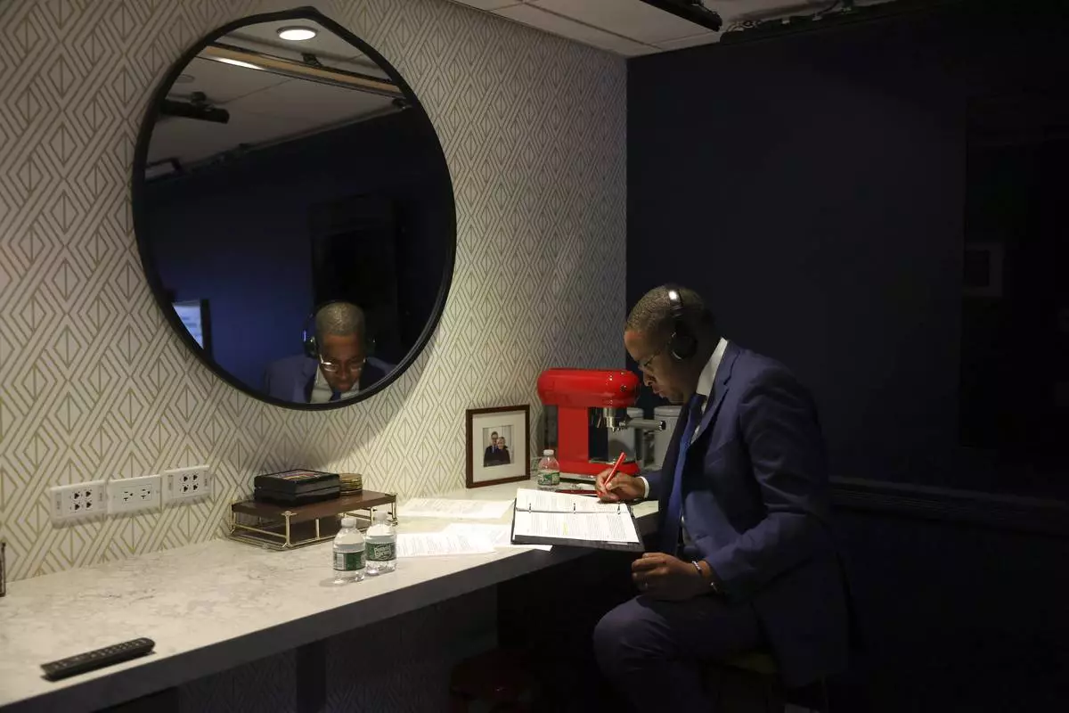 Democratic mayoral candidate Zohran Mamdani prepares to participate in a Democratic mayoral primary debate, Wednesday, June 4, 2025, in New York. (AP Photo/Yuki Iwamura, Pool)