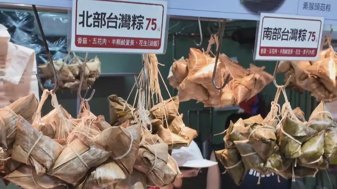 The market offers a wide variety of zongzi, catering to 20 or 30 different flavors, such as the local southern Taiwan zongzi, northern Taiwan zongzi, and the most famous one -- Huzhou-style zongzi.