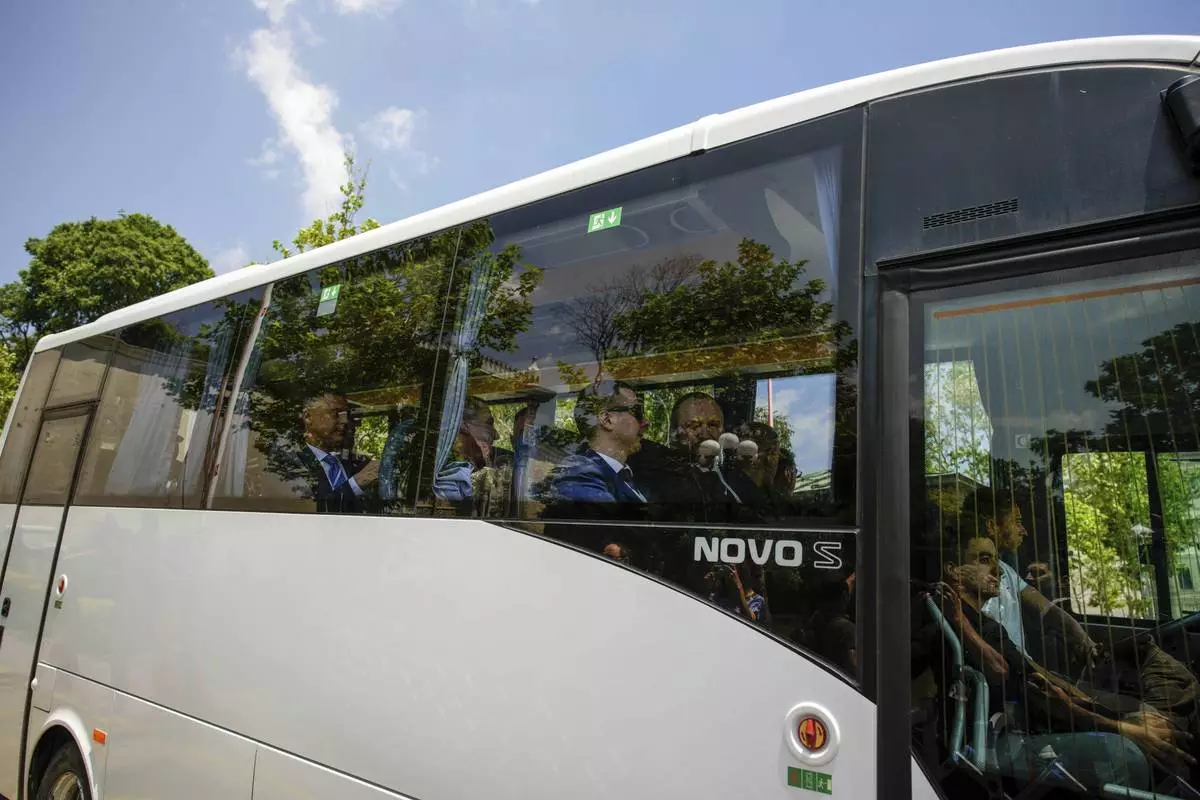 Members of the Ukrainian delegation arrive at the Ciragan Palace for Ukraine-Russia peace talks in Istanbul, Turkey, Monday, June 2, 2025. (AP Photo/Emrah Gurel)