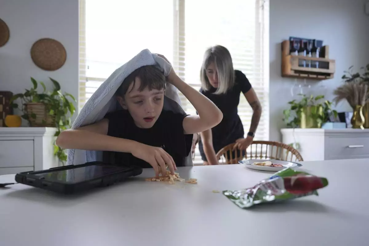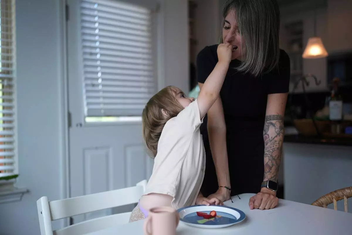 Eileen Lamb, who was diagnosed with autism as an adult, shares a snack with her daughter Billie, Monday, May 12, 2025, in Austin, Texas. (AP Photo/Eric Gay)