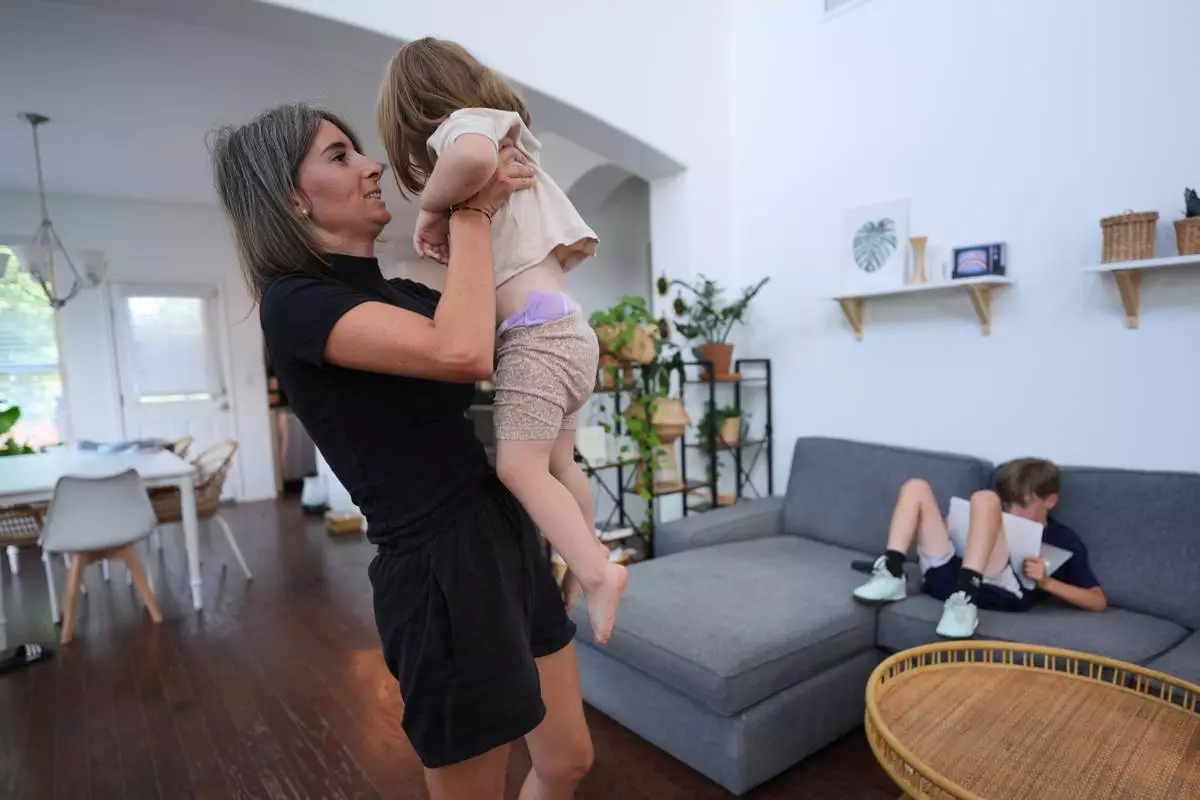 Eileen Lamb, from left, who was diagnosed with autism as an adult, watches over her children, Charlie Lamb and Jude, right, who also have autism, and daughter Billie, Monday, May 12, 2025, in Austin, Texas. (AP Photo/Eric Gay)