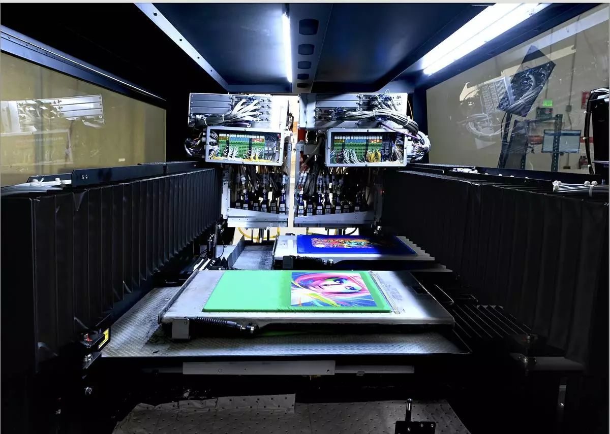Precision in motion: Our state-of-the-art printer brings vibrant artwork to life on apparel with unmatched detail and speed.