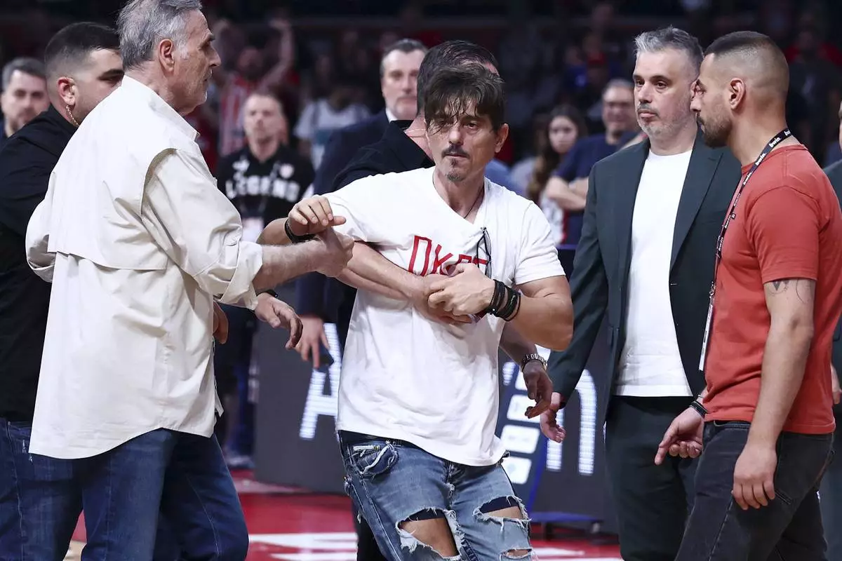 Sunday’s game at Peace and Friendship Stadium was won by Olympiakos and marred by multiple incidents. Panathinaikos owner Dimitris Giannakopoulos was escorted out at halftime following a heated exchange with referees. Coach Ergin Ataman was ejected in the fourth quarter after receiving a second technical foul. Television footage of the game showed security guards from both teams coming to blows as Giannakopoulos walked out in a heated atmosphere.