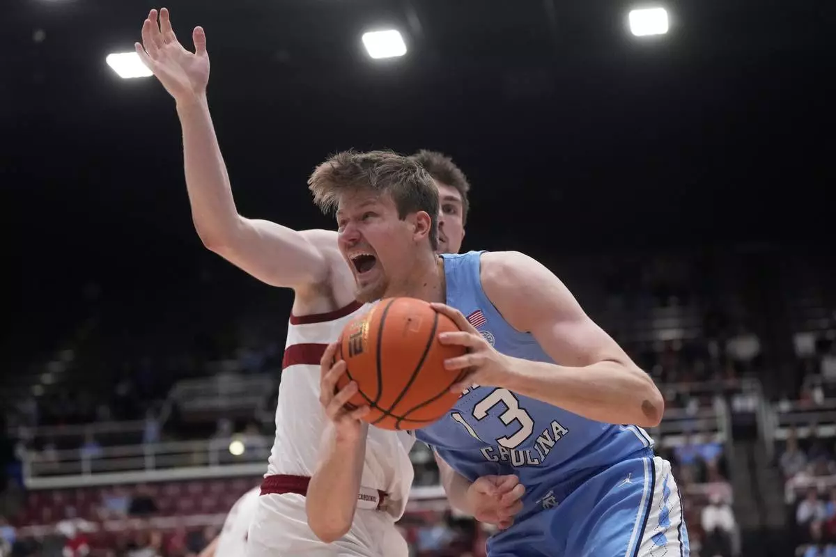 North Carolina broke out to a 12-point lead early in the first half behind Veesaar, but Okorie got Stanford back into it with 17 points and five assists as the Cardinal cut it to 47-45 at the break.