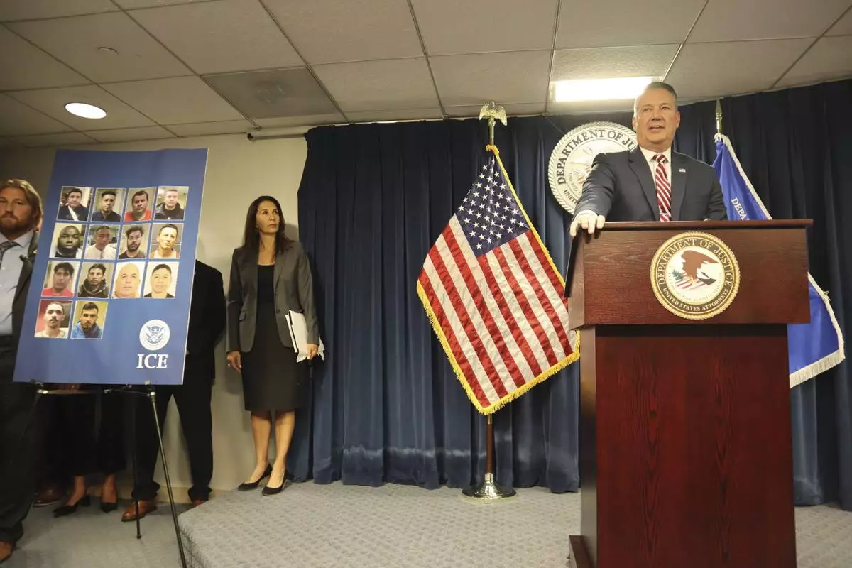 Lyons stood near a poster board with mug shots of unnamed immigrants. A full list of those arrested was not available, nor was information about the crimes specific individuals are accused of committing.