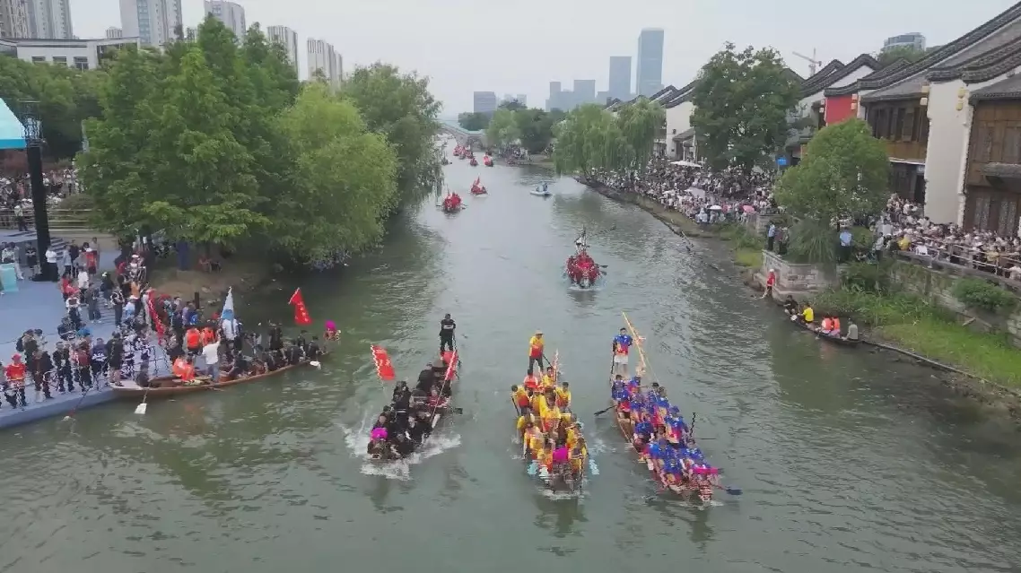 In Hangzhou City in east China's Zhejiang Province, over 80 uniquely shaped dragon boats raced on the Yuhangtang River. The local competition rules do not prioritize speed, but instead use the height of the splashes as a standard for evaluation, with the highest splashes receiving the accolades.