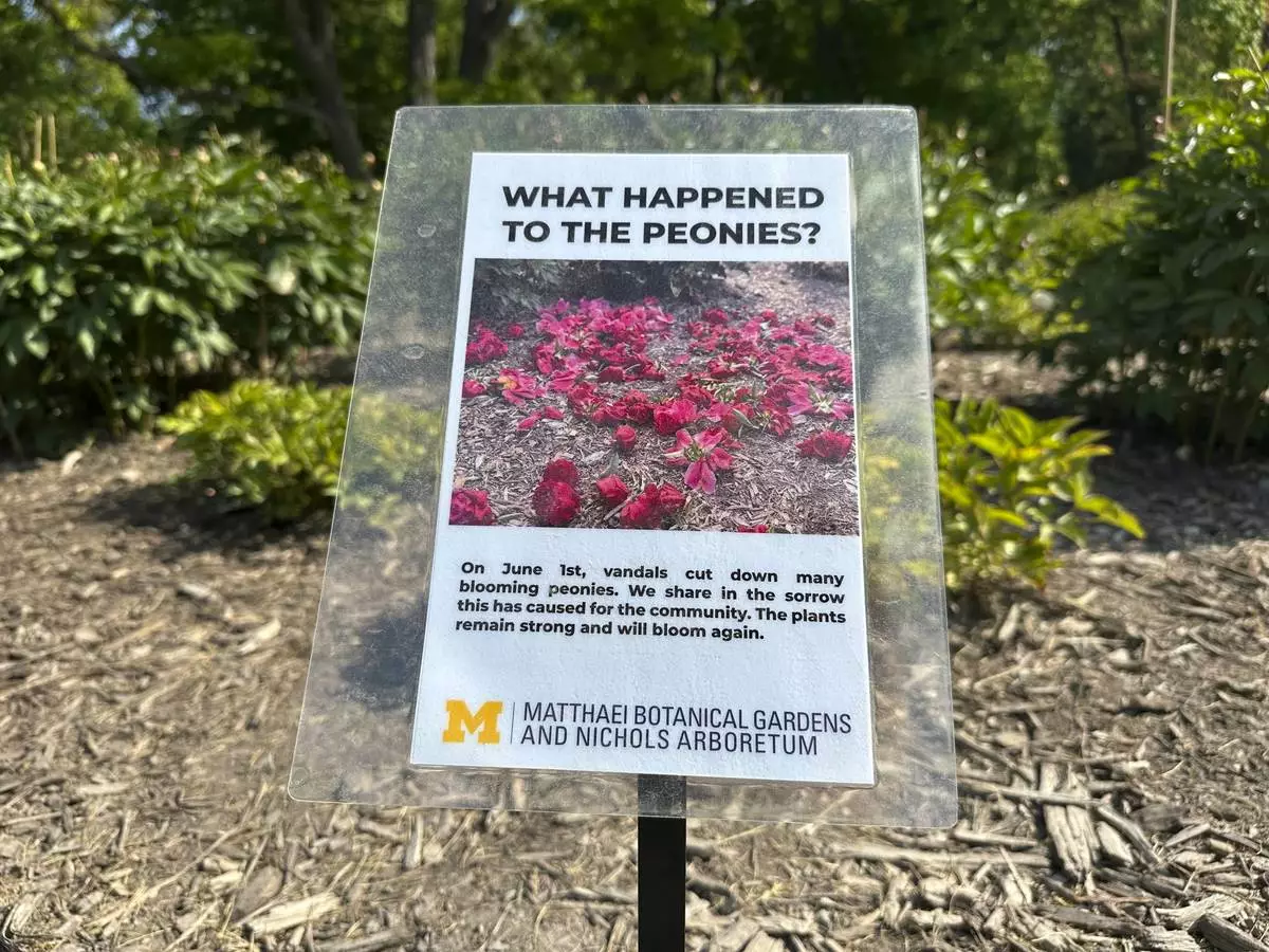 But there was a somber mood among some Monday. Vandals cut off the blooms of roughly 250 peonies a day earlier, the University of Michigan Division of Public Safety and Security said in a statement.
