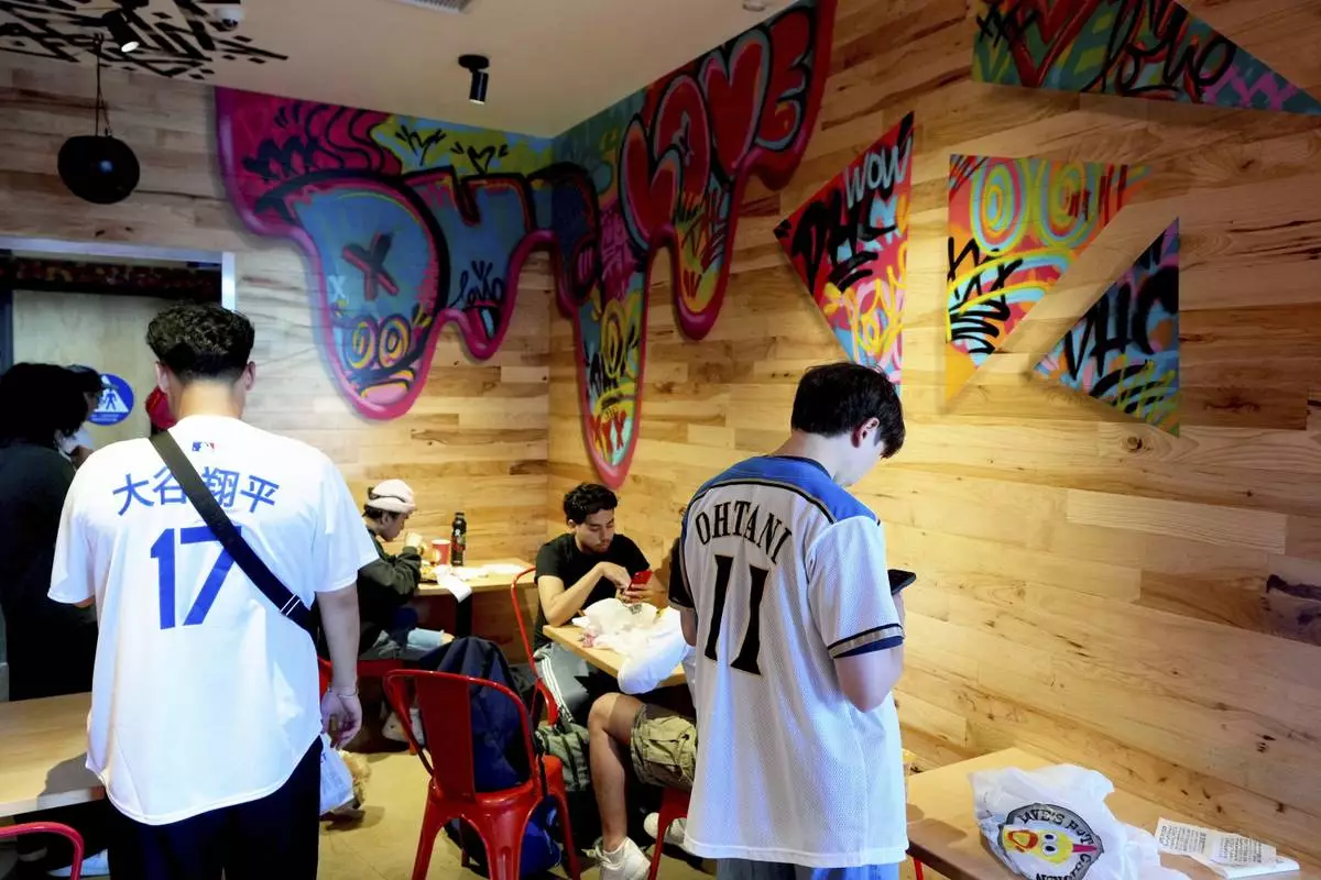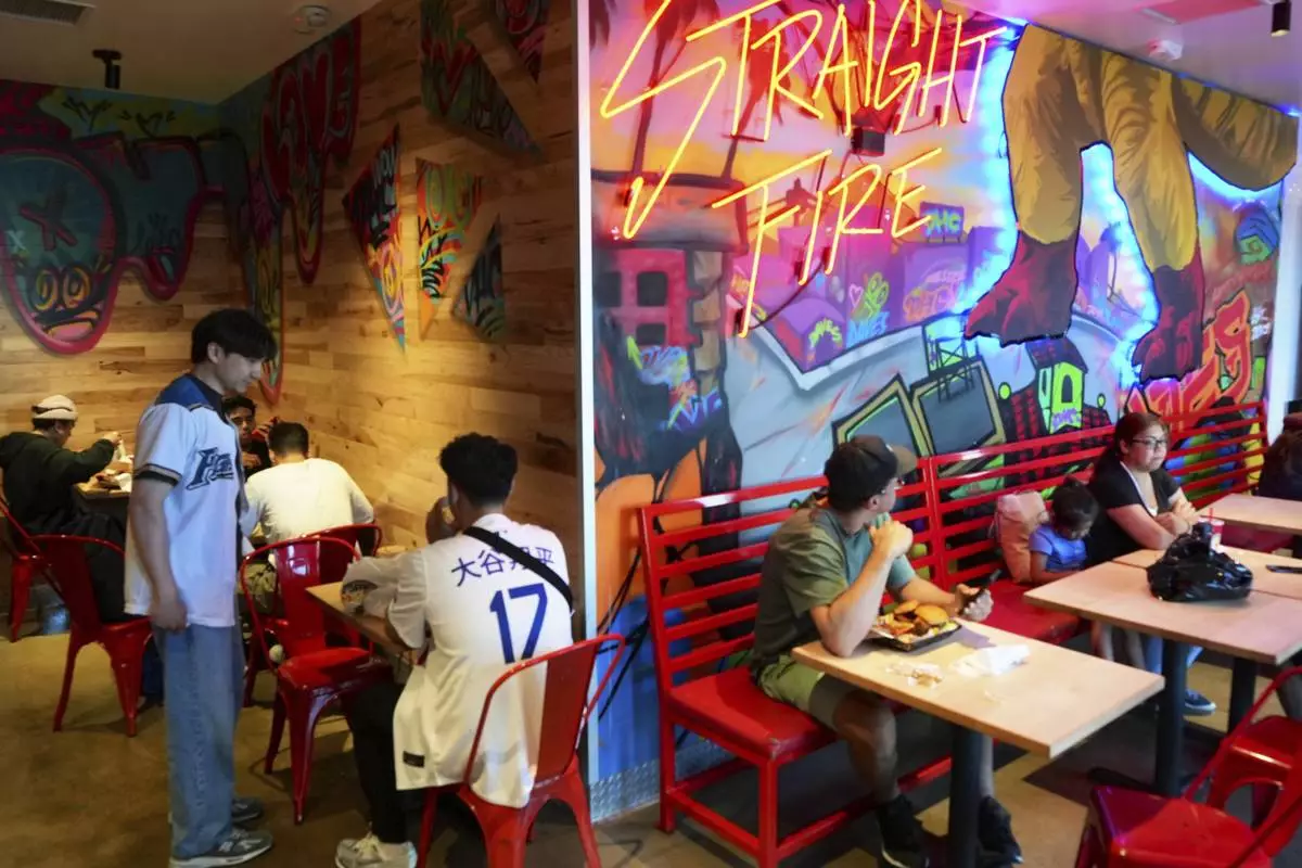 Customers eat inside Dave's Hot Chicken restaurant in the Little Tokyo district of Los Angeles Monday, June 2, 2025. (AP Photo/Damian Dovarganes)