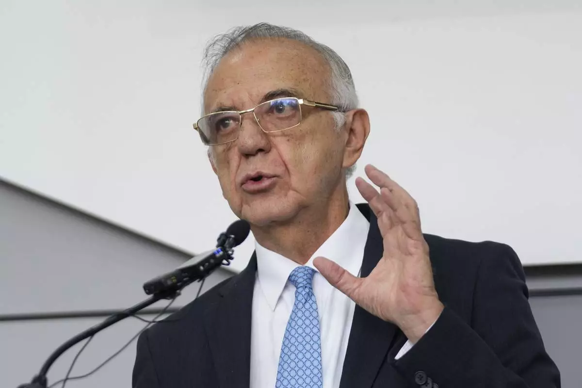 FILE - Outgoing Defense Minister Ivan Velasquez introduces the new National Police Director Gen. Carlos Fernando Triana in Bogota, Colombia, Feb. 14, 2025. (AP Photo/Fernando Vergara, File)