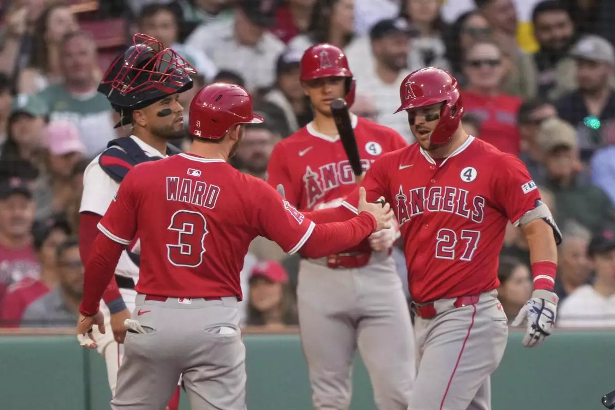 BOSTON (AP) — Mike Trout had three hits, including a three-run, 454-foot homer off the left-center field light stanchion in the Angels' six-run first inning on Monday night and Los Angeles held on to beat the Boston Red Sox 7-6.