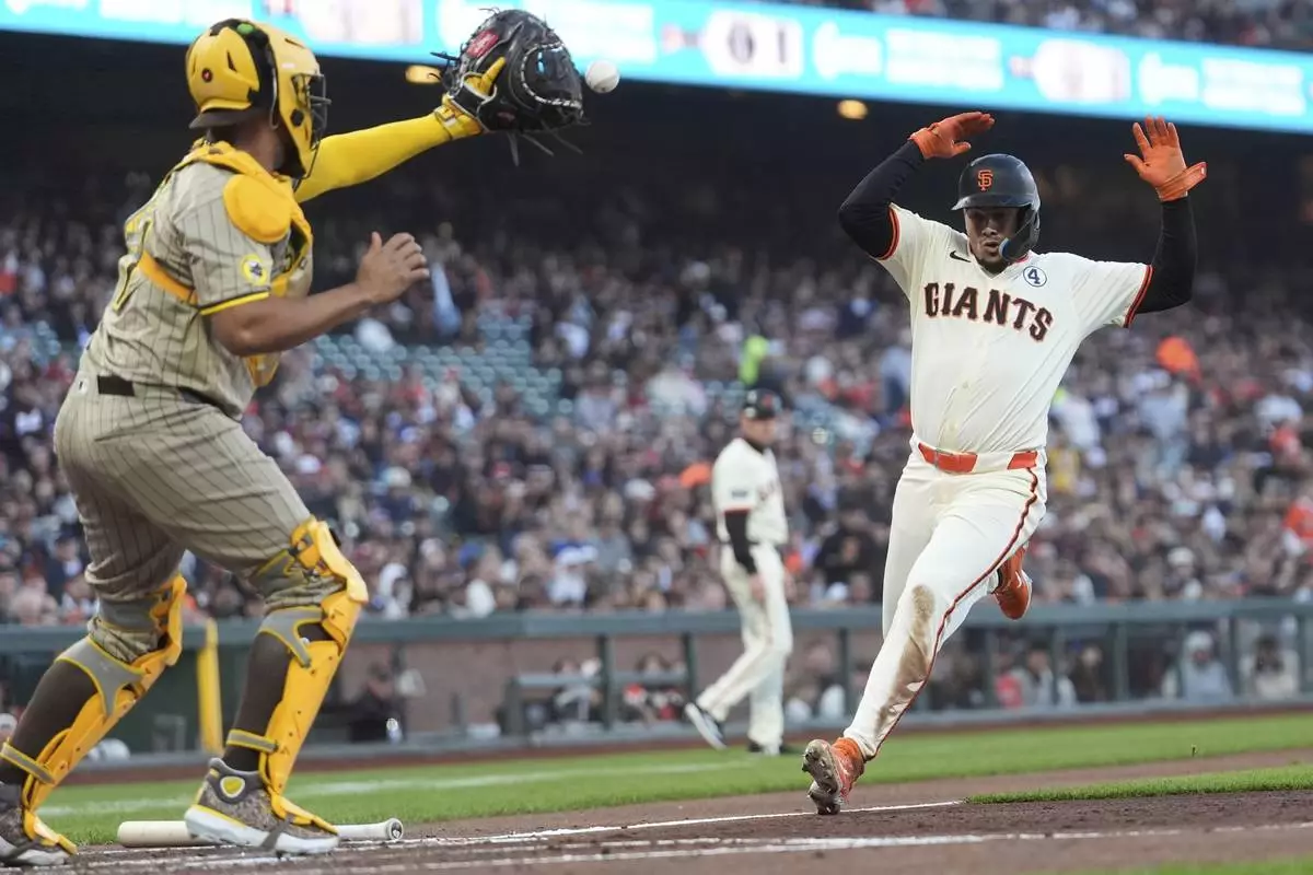 Jeremiah Estrada entered for San Diego with a runner aboard and two outs in the seventh then walked Tyler Fitzgerald. After a mound visit, Heliot Ramos walked to load the bases but Jung Hoo Lee struck out on three pitches.