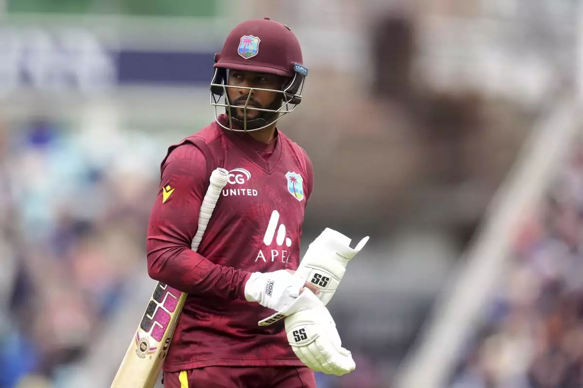 West Indies captain Shai Hope walks off the pitch during the third One Day International cricket match between West Indies and England at Oval, London, Tuesday June 3, 2025. (Adam Davy/PA via AP)