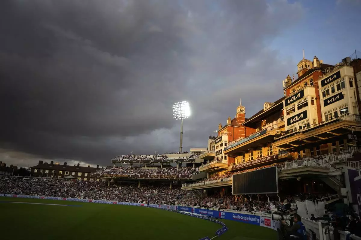 FILE - The sun shines on the pavillion at The Oval cricket ground in London on Sept. 13, 2023. (AP Photo/Kirsty Wigglesworth, File)