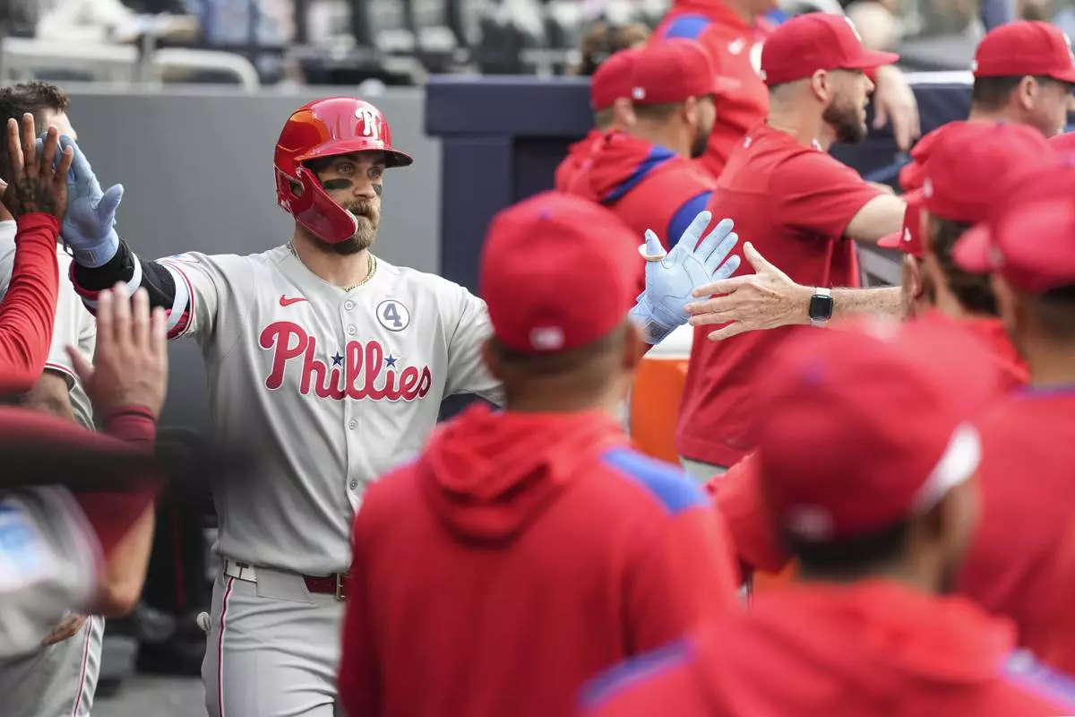Bryson Stott drew a leadoff walk and Turner followed with a two-run homer. Harper piled on with a 394-foot drive, his ninth. It was the third time the Phillies have hit back-to-back homers.